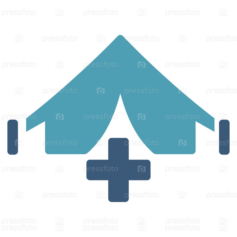Поданной в больнице глиф значок. Стиль является биколор плоский символ, голубой и синий цвета, закругленные углы, белый фон