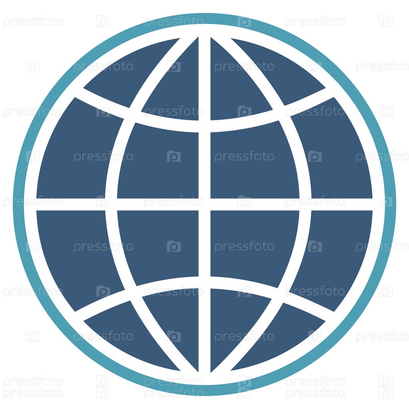 Глобус значок глифов. Стиль является биколор плоский символ, голубой и синий цвета, закругленные углы, белый фон