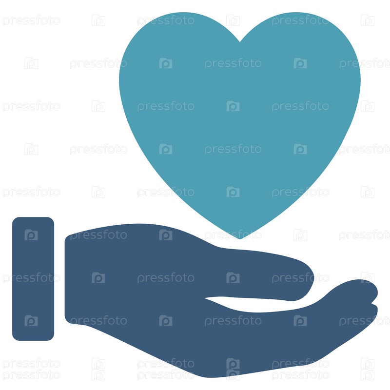 Сердце значок глифов благотворительности. Стиль является биколор плоский символ, голубой и синий цвета, закругленные углы, белый фон