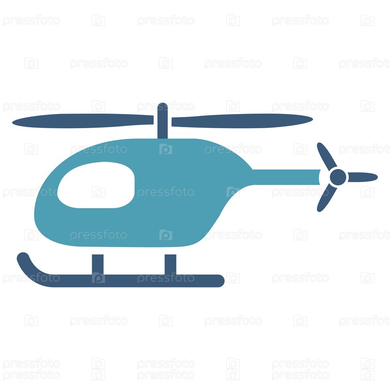 Вертолет значок глифов. Стиль является биколор плоский символ, голубой и синий цвета, закругленные углы, белый фон