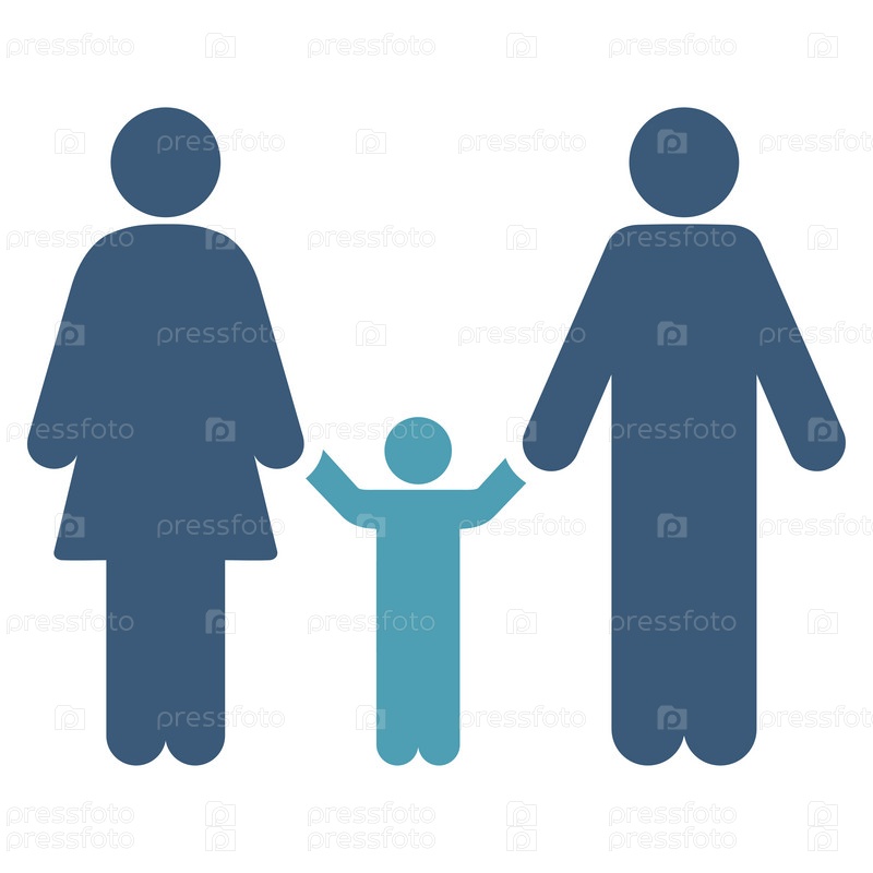 Родители и ребенок глиф значок. Стиль является биколор плоский символ, голубой и синий цвета, закругленные углы, белый фон