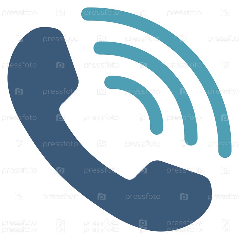 Телефонный звонок значок глифов. Стиль является биколор плоский символ, голубой и синий цвета, закругленные углы, белый фон