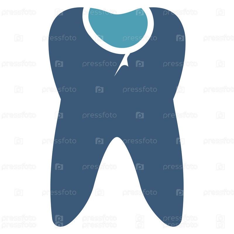 Значок глифов кариеса зуба. Стиль является биколор плоский символ, голубой и синий цвета, закругленные углы, белый фон
