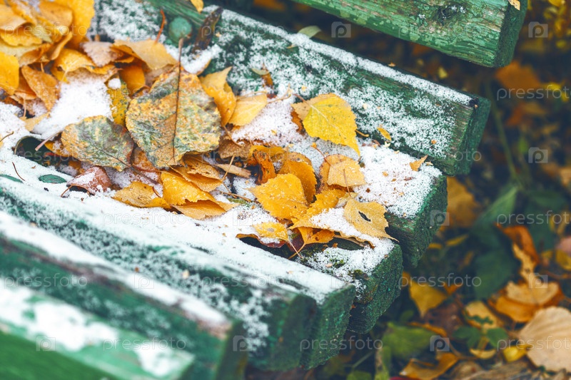 Желтый листья на снегу