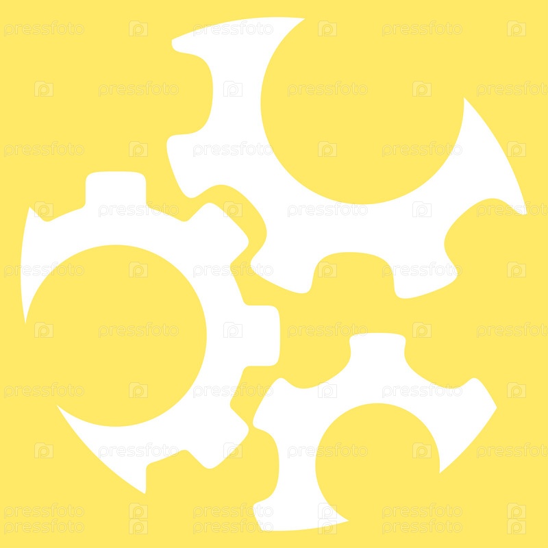 Механика иллюстрации значок. Стиль является плоской символ, белый цвет, закругленные углы, желтый фон