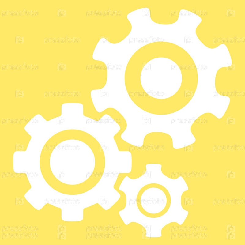 Механизма иллюстрации значок. Стиль является плоской символ, белый цвет, закругленные углы, желтый фон