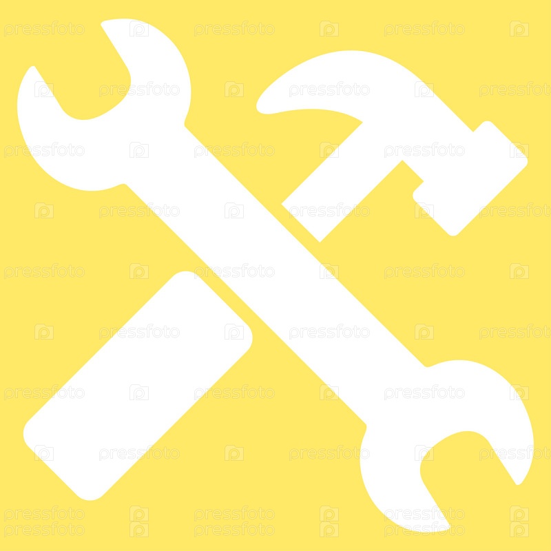 Молоток и иллюстрации инструментов. Стиль является плоской символ, белый цвет, закругленные углы, желтый фон