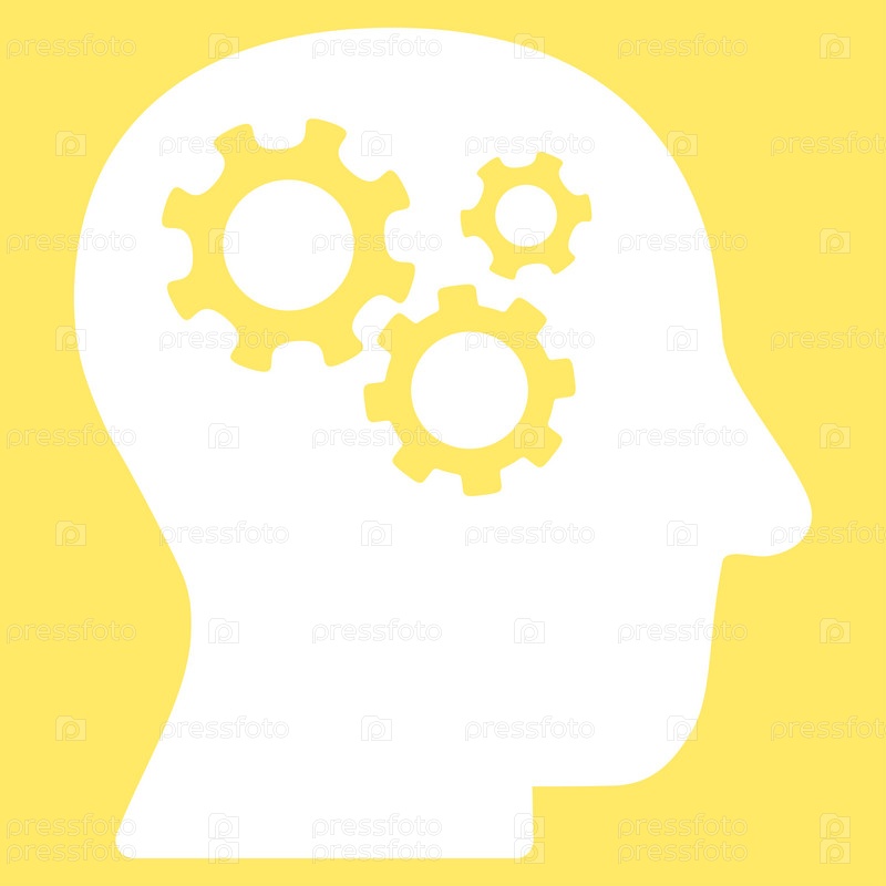 Интеллект иллюстрации значок. Стиль является плоской символ, белый цвет, закругленные углы, желтый фон