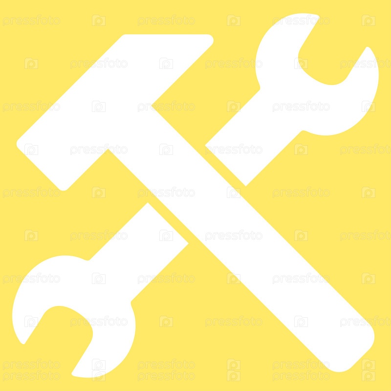 Молоток и иллюстрации инструментов. Стиль является плоской символ, белый цвет, закругленные углы, желтый фон