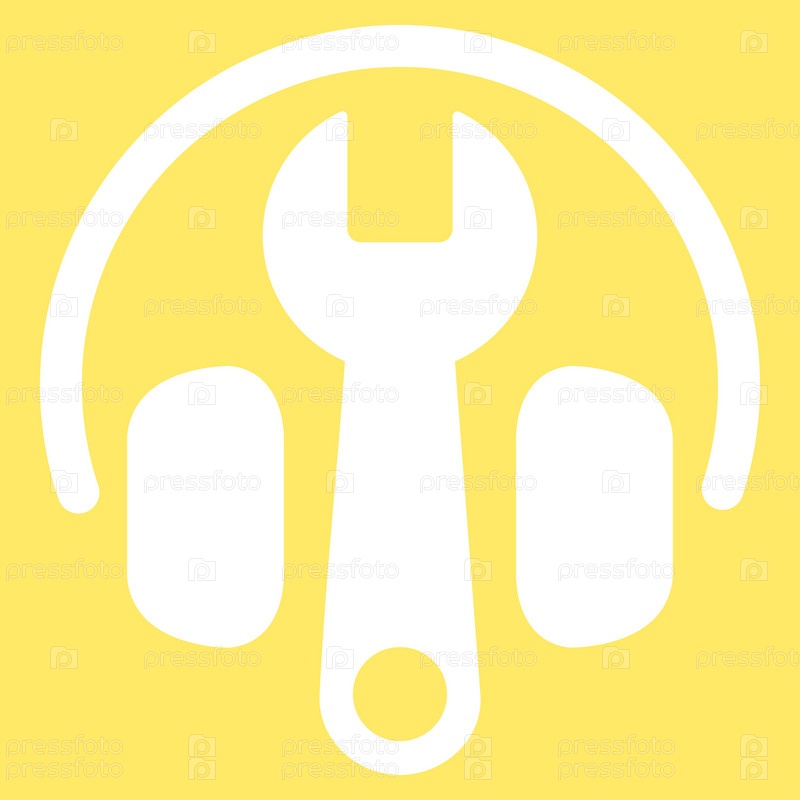 Гарнитуры значок Параметры иллюстрации. Стиль является плоской символ, белый цвет, закругленные углы, желтый фон