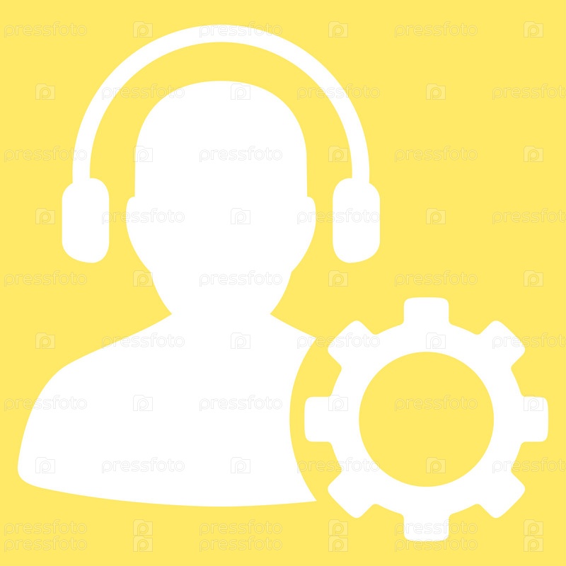 Значок оператора конфигурации иллюстрации. Стиль является плоской символ, белый цвет, закругленные углы, желтый фон