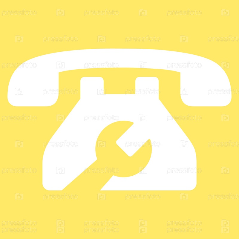 Телефон службы иллюстрации значок. Стиль является плоской символ, белый цвет, закругленные углы, желтый фон