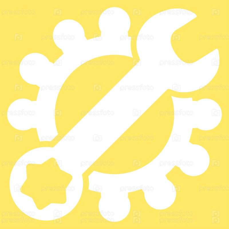 Значок службы инструментов иллюстрации. Стиль является плоской символ, белый цвет, закругленные углы, желтый фон