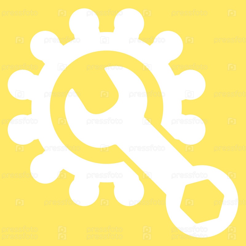 Значок службы инструментов иллюстрации. Стиль является плоской символ, белый цвет, закругленные углы, желтый фон