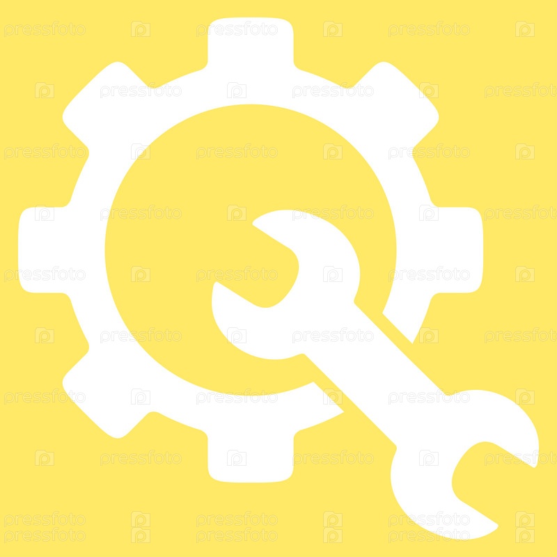 Значок службы инструментов иллюстрации. Стиль является плоской символ, белый цвет, закругленные углы, желтый фон