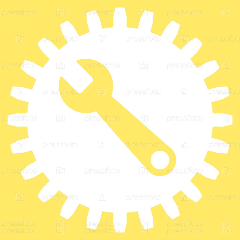 Значок службы инструментов иллюстрации. Стиль является плоской символ, белый цвет, закругленные углы, желтый фон