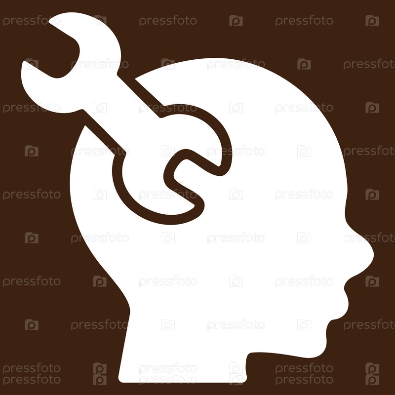 Мозг службы иллюстрации значок. Стиль является плоской символ, белый цвет, закругленные углы, коричневый фон