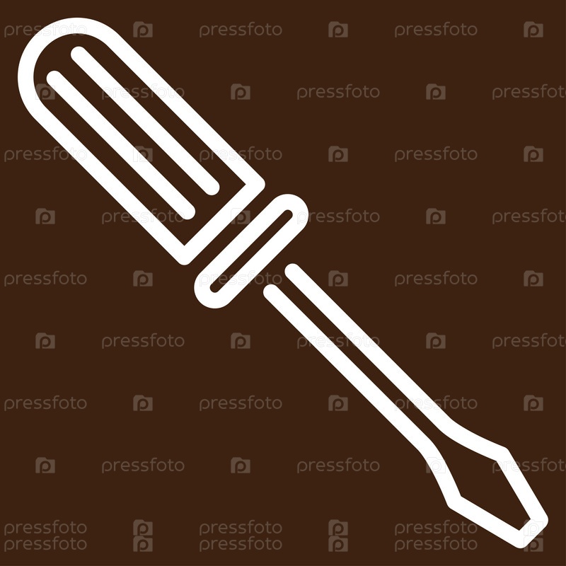 Контур отвертки иллюстрации значок. Стиль является плоской символ, белый цвет, закругленные углы, коричневый фон