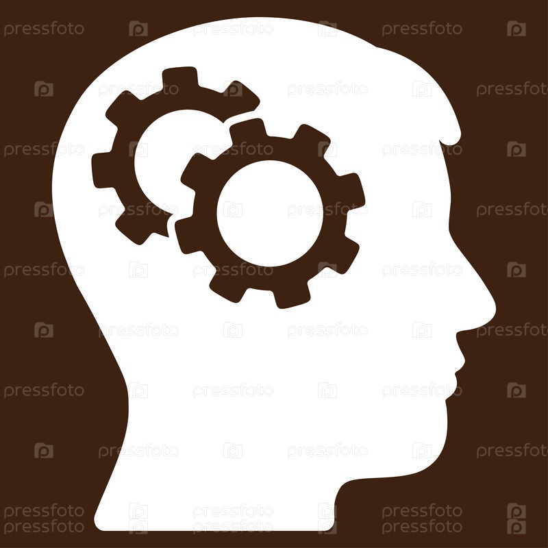 Интеллект иллюстрации значок. Стиль является плоской символ, белый цвет, закругленные углы, коричневый фон