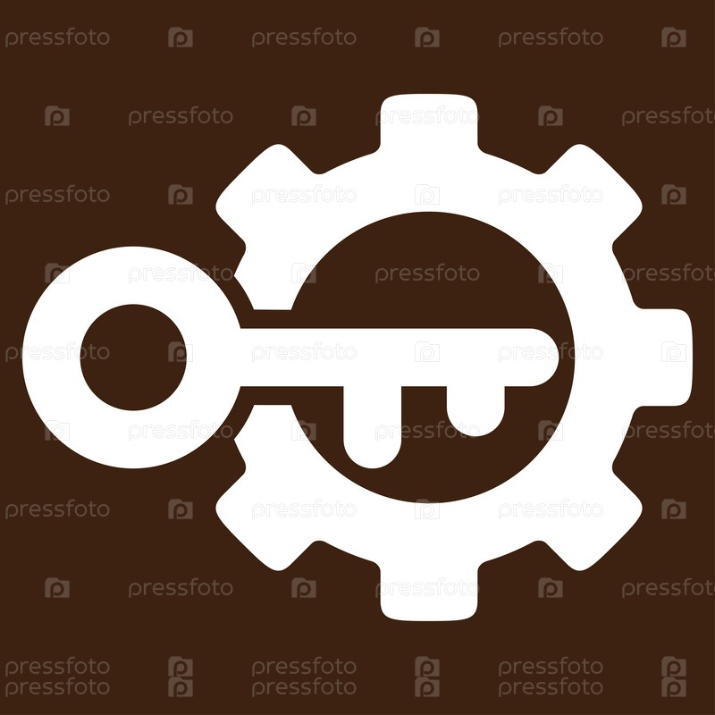 Параметры ключа иллюстрации значок. Стиль является плоской символ, белый цвет, закругленные углы, коричневый фон
