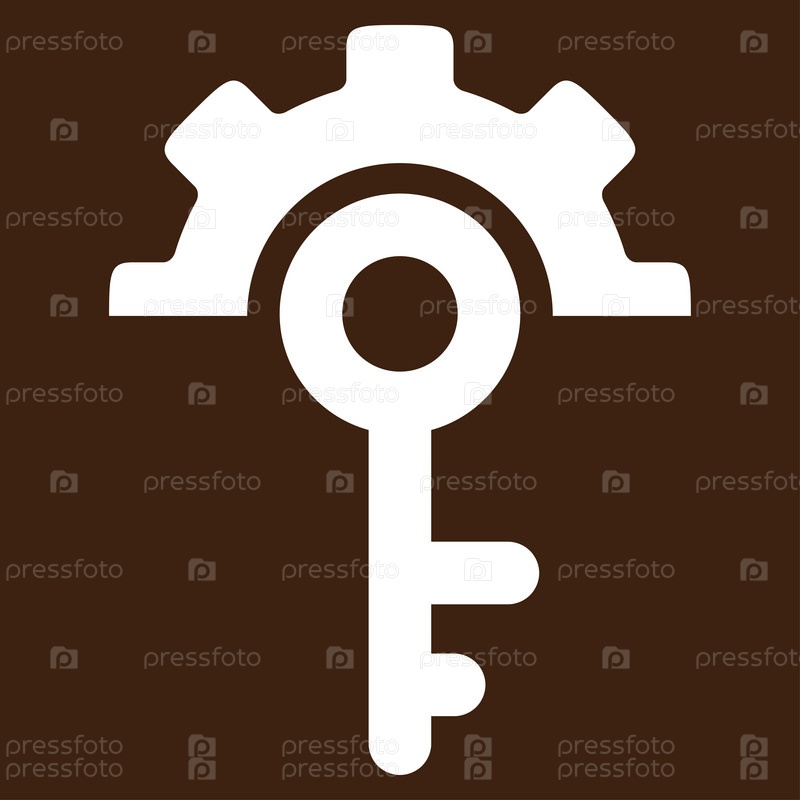 Параметры ключа иллюстрации значок. Стиль является плоской символ, белый цвет, закругленные углы, коричневый фон