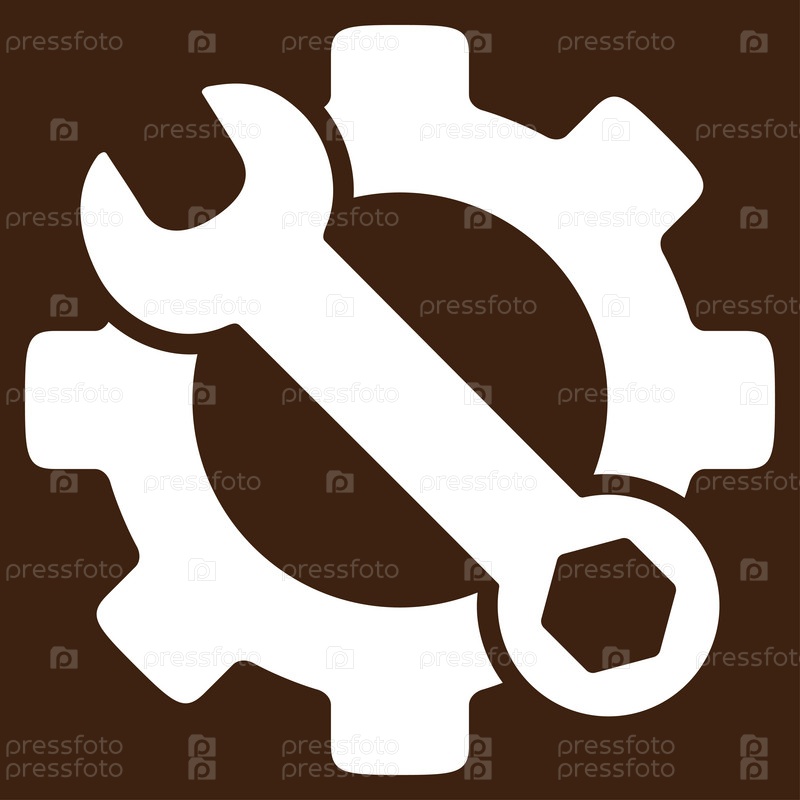 Значок службы инструментов иллюстрации. Стиль является плоской символ, белый цвет, закругленные углы, коричневый фон