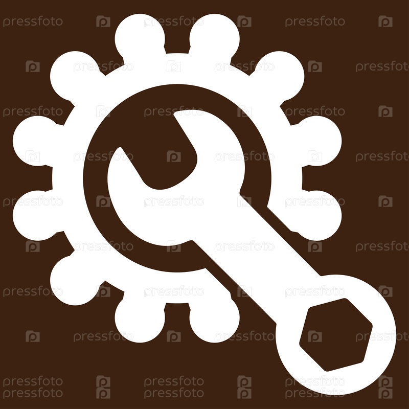 Значок службы инструментов иллюстрации. Стиль является плоской символ, белый цвет, закругленные углы, коричневый фон