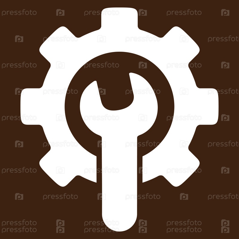 Значок службы инструментов иллюстрации. Стиль является плоской символ, белый цвет, закругленные углы, коричневый фон