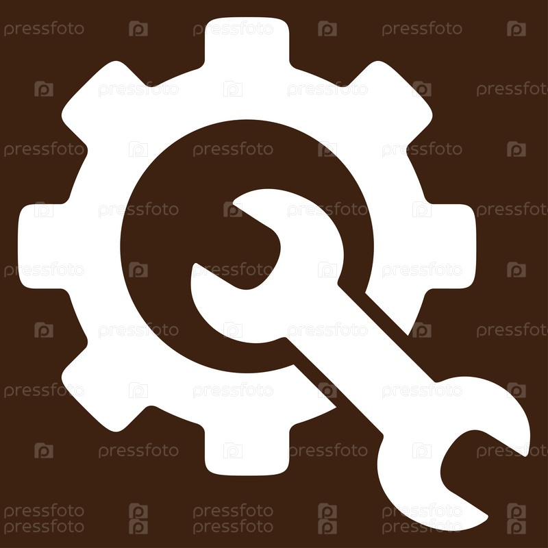 Значок службы инструментов иллюстрации. Стиль является плоской символ, белый цвет, закругленные углы, коричневый фон