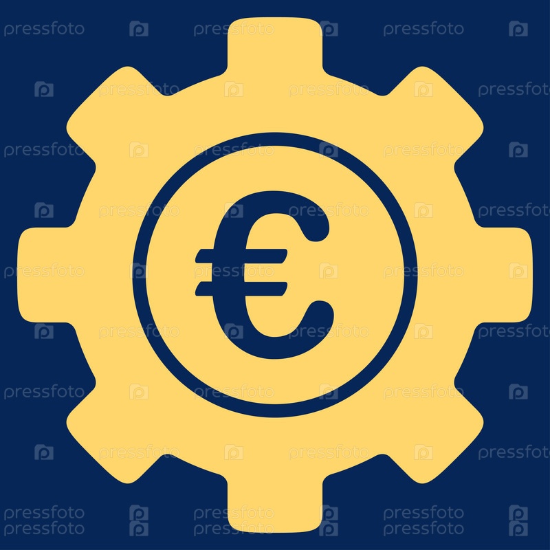 Евро развития иллюстрации значок. Стиль является плоской символ, желтый цвет, закругленные углы, синий фон
