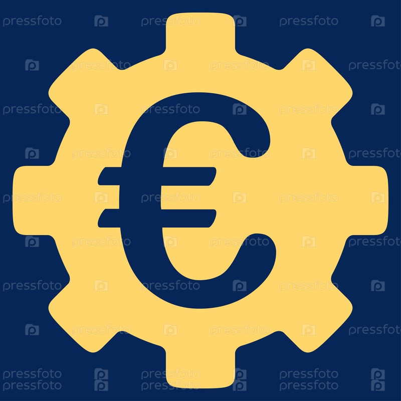 Евро развития иллюстрации значок. Стиль является плоской символ, желтый цвет, закругленные углы, синий фон