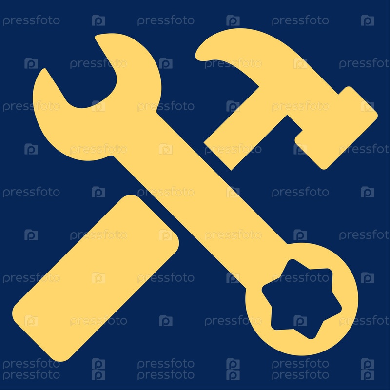 Молоток и иллюстрации инструментов. Стиль является плоской символ, желтый цвет, закругленные углы, синий фон