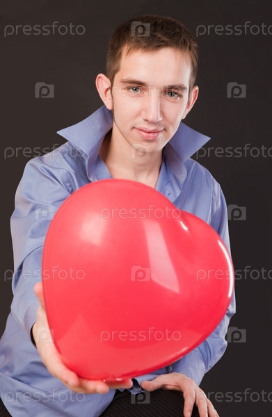 Портрет молодого человека с воздушным шаром в виде сердца