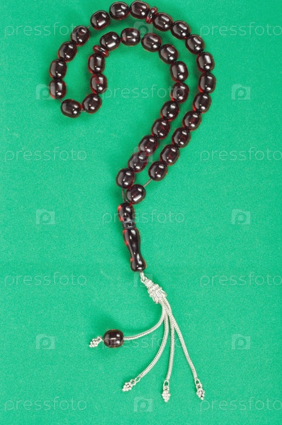 Мусульманские четки на зеленом фоне