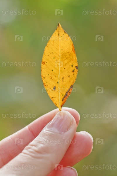 Желтый лист в руке