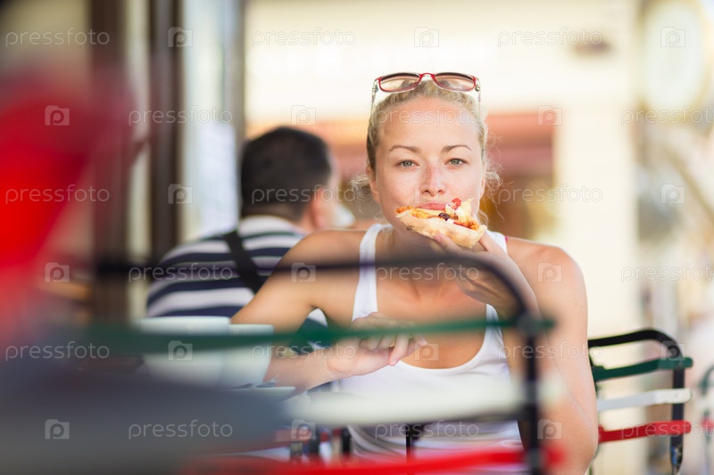 Женщина ест пиццу