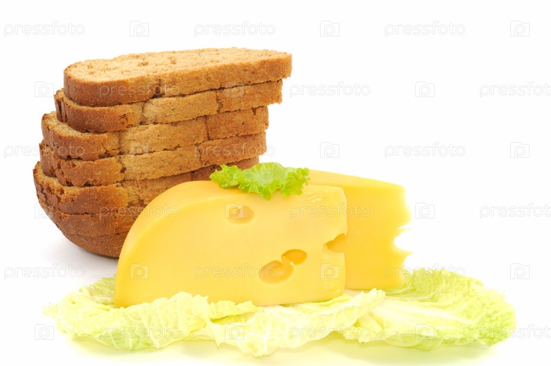 Свежий хлеб и сыр, на белом фоне