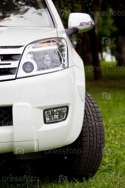 Переднее колесо, бампер и фара автомобиля