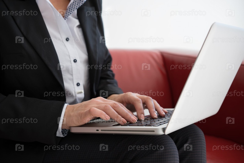 Женщина работает на ноутбуке
