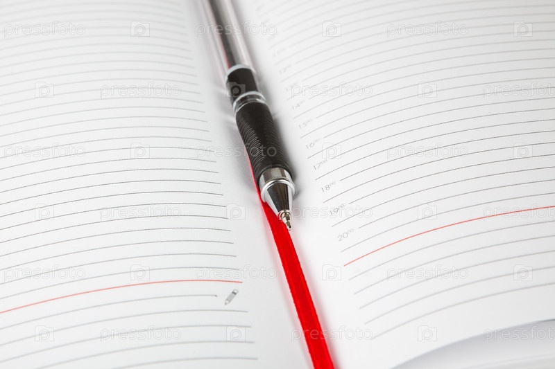 Открытый ежедневник и ручка крупным планом