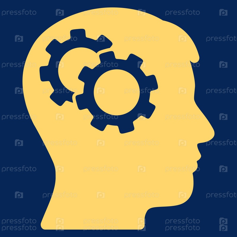 Интеллект иллюстрации значок. Стиль является плоской символ, желтый цвет, закругленные углы, синий фон