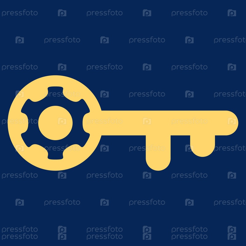 Параметры ключа иллюстрации значок. Стиль является плоской символ, желтый цвет, закругленные углы, синий фон