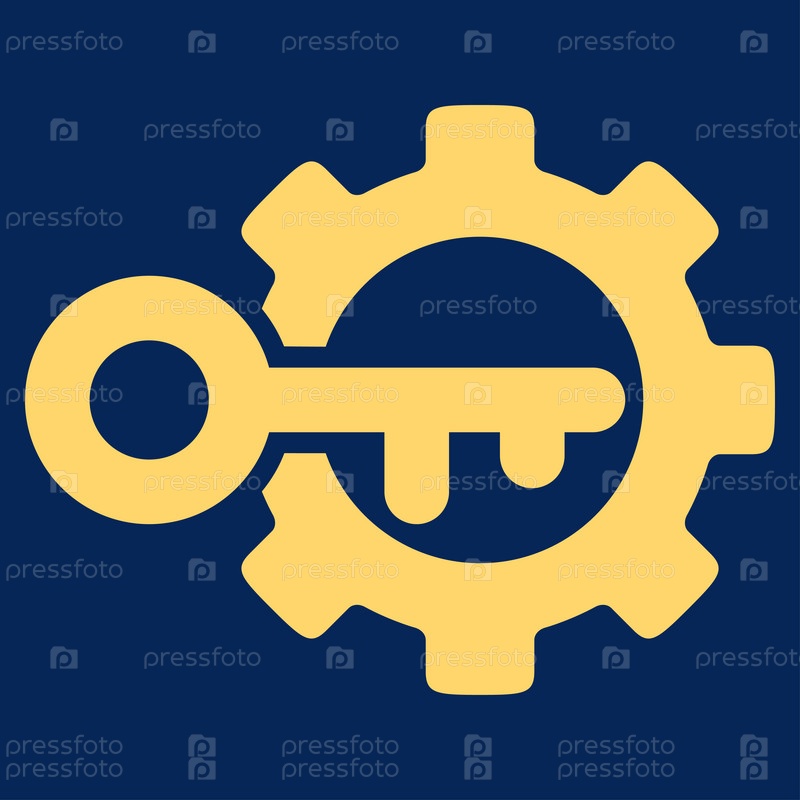 Параметры ключа иллюстрации значок. Стиль является плоской символ, желтый цвет, закругленные углы, синий фон