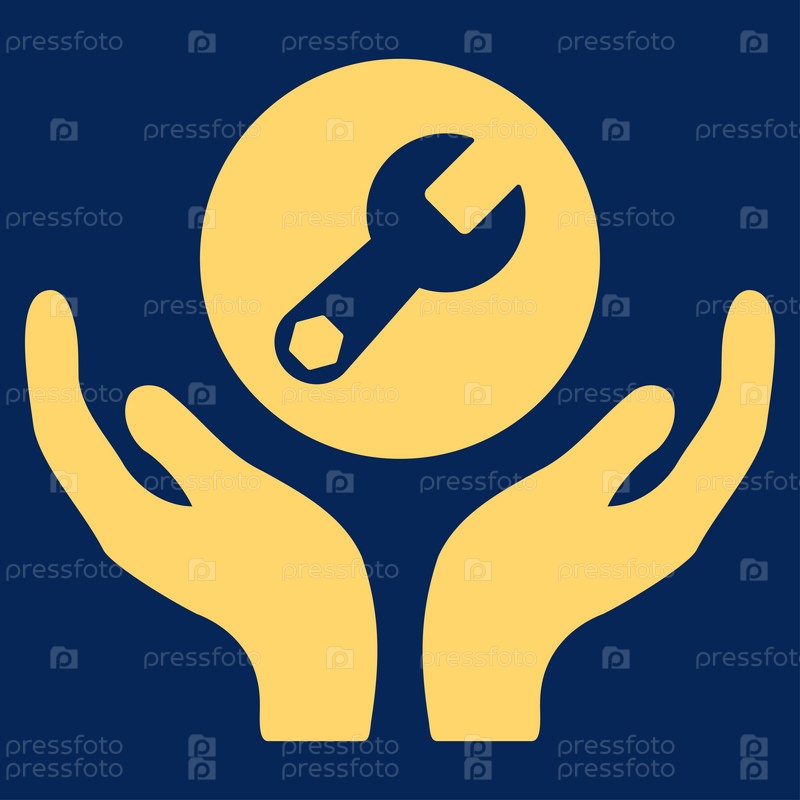 Значок иллюстрации обслуживания. Стиль является плоской символ, желтый цвет, закругленные углы, синий фон