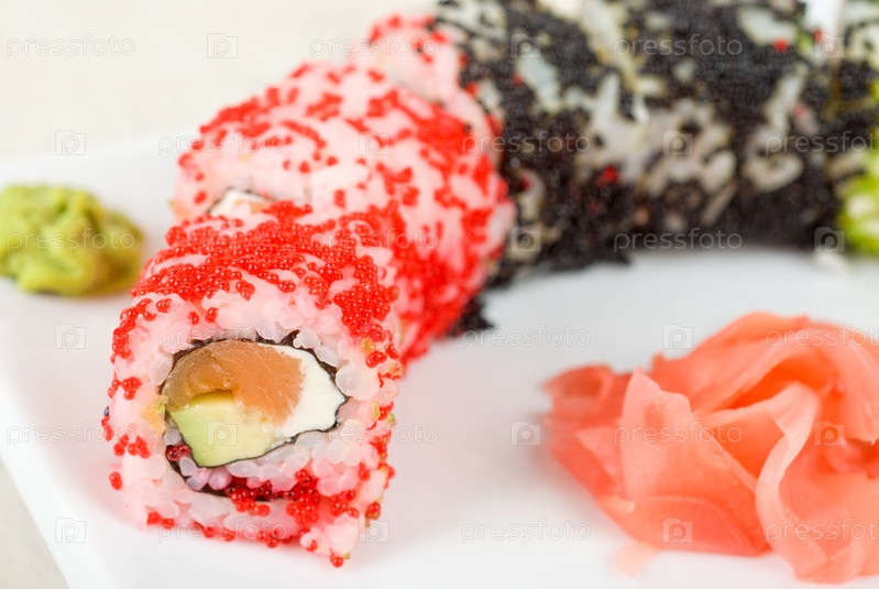Роллы с авокадо и икрой тобико