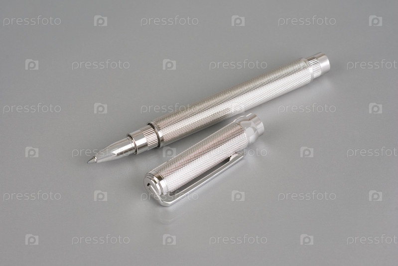Стильная шариковая ручка из белого золота на сером фоне