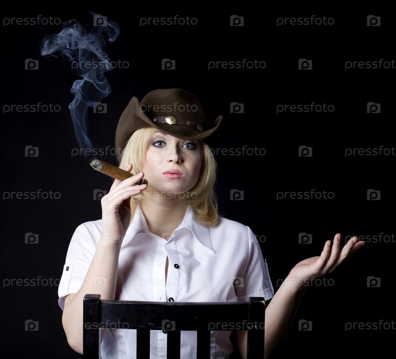Молодая ковбойка курит сигару