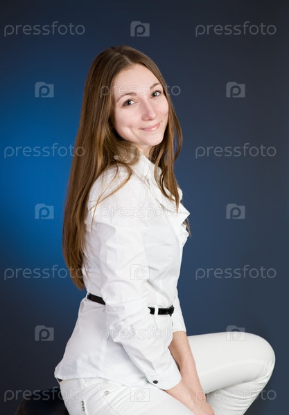 Портрет красивой девушки на синем фоне