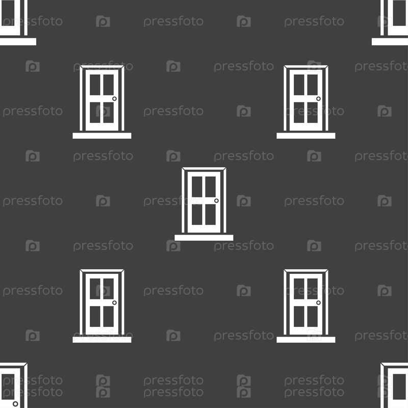 Дверь. Бесшовный узор на сером фоне. Вектор