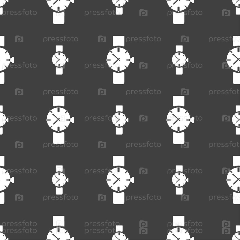 Часы. Бесшовный узор на сером фоне. Вектор